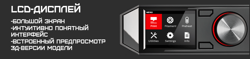 Несмотря на существенное увеличение максимальных габаритов изделий, все параметры точности и скорости печати остались неизменными. Больше того, появилась функция контроля подачи пластика, подающая сигнал о необходимости сменить бобину с остановкой принтера на время замены. Сам Smart экструдер Z18 крепится на магнитах и может быть легко и быстро заменён. Стандартную катушку с пластиком также можно заменить на увеличенную катушку, что актуально при изготовлении крупногабаритных изделий. Интуитивно понятный интерфейс MakerBot Replicator Z18, купить который можно в нашей компании, прост в освоении, а вся подготовка к работе заключается в подключении принтера к сети.